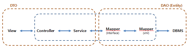 - DB table 필드와 같으며, DB를 통해 조회한 값을 가져오기 위한 객체