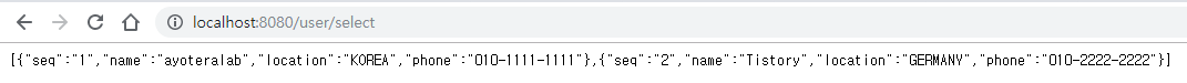 정상적으로 DB의 User table의 전체 리스트를 받아왔습니다.
