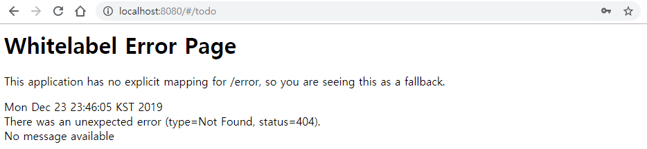 이 상태에서 ID와 Pass를 입력해 봅니다. 예상을 해본다면... .defaultSuccessUrl("/#/todo") 설정으로 해당 페이지로 이동하고, 서버에서보면 authentication정보가 출력 될 것입니다.