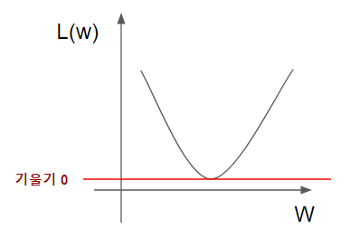 W (weight)에 따라 어느지점보다 작아지면 Loss가 커지고, 반대로 어느지점보다 커지면 또 Loss가 커집니다. 따라서 Loss가 가장작은 지점은 2차함수의 가장 오목한 부분인데... 미분의 개념을 도입하면 해당 곡선의 기울기가 0인 지점입니다. 결국 미분값이 0은 지점을 계속 찾아나가는 방식입니다.