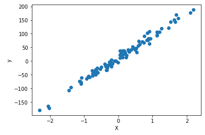 사이킷런에서 제공하는 datasets으로 make_regression을 합니다. 비교를 위해서 지난번과 동일한 인자로 생성합니다. 하지만 동일한 분포에서 random으로 생성하니 엄밀하게는 다를 수 있습니다.
