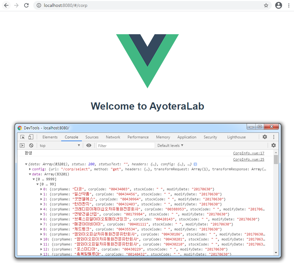 이렇게 정보를 제공합니다. 그렇다면!! vue.js의 axios를 통해서 가져온 결과는 어떨까요??