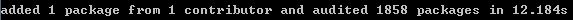 그리고 해당프로젝트 경로에서 npm install을 수행합니다. 그럼 아래와 같이 메시지가 뜨고 정상 설치가 완료됩니다.