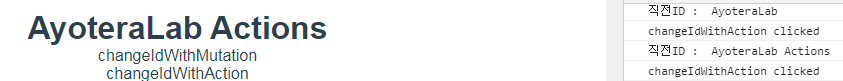 3. changeIdWithAction 버튼클릭 - 정상적으로 payload값으로 변경하고 dom에 실시간 반영되어 표시됨